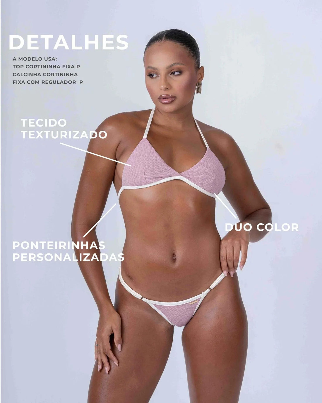 Calcinha Cortininha Fixa com regulador Rosa Glam com viés Off White