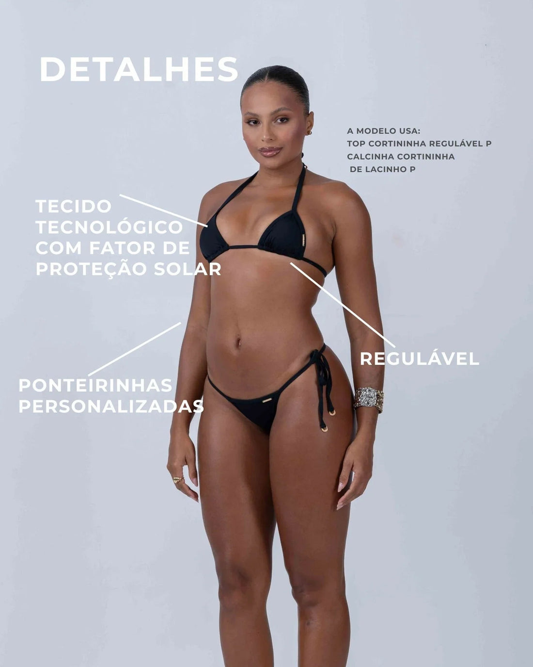 Calcinha Cortininha Fixa com regulador Preto