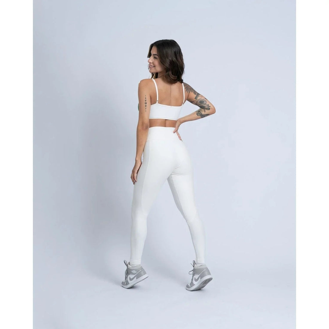 Calça Legging fitness Classic Off White com compressão e sem empina bumbum