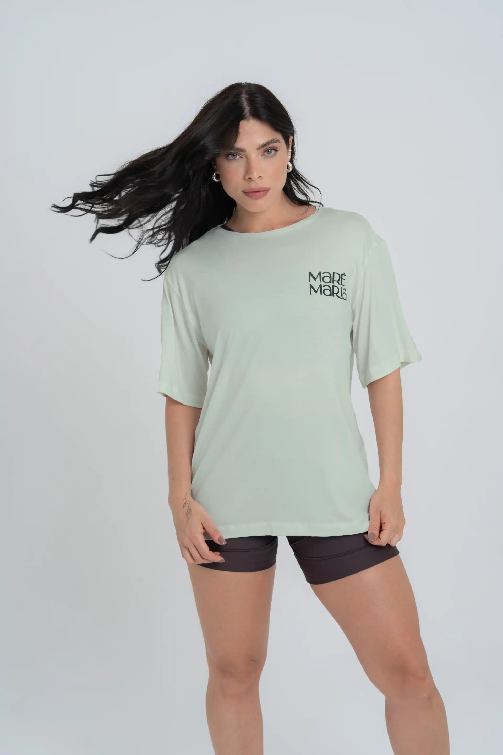 Estampa Exclusiva: Logo Maré Maria em destaque na parte frontal, acompanhada da estampa de um copo americano de café, referência aos metrôs de São Paulo, trazendo um toque urbano e acolhedor à peça.