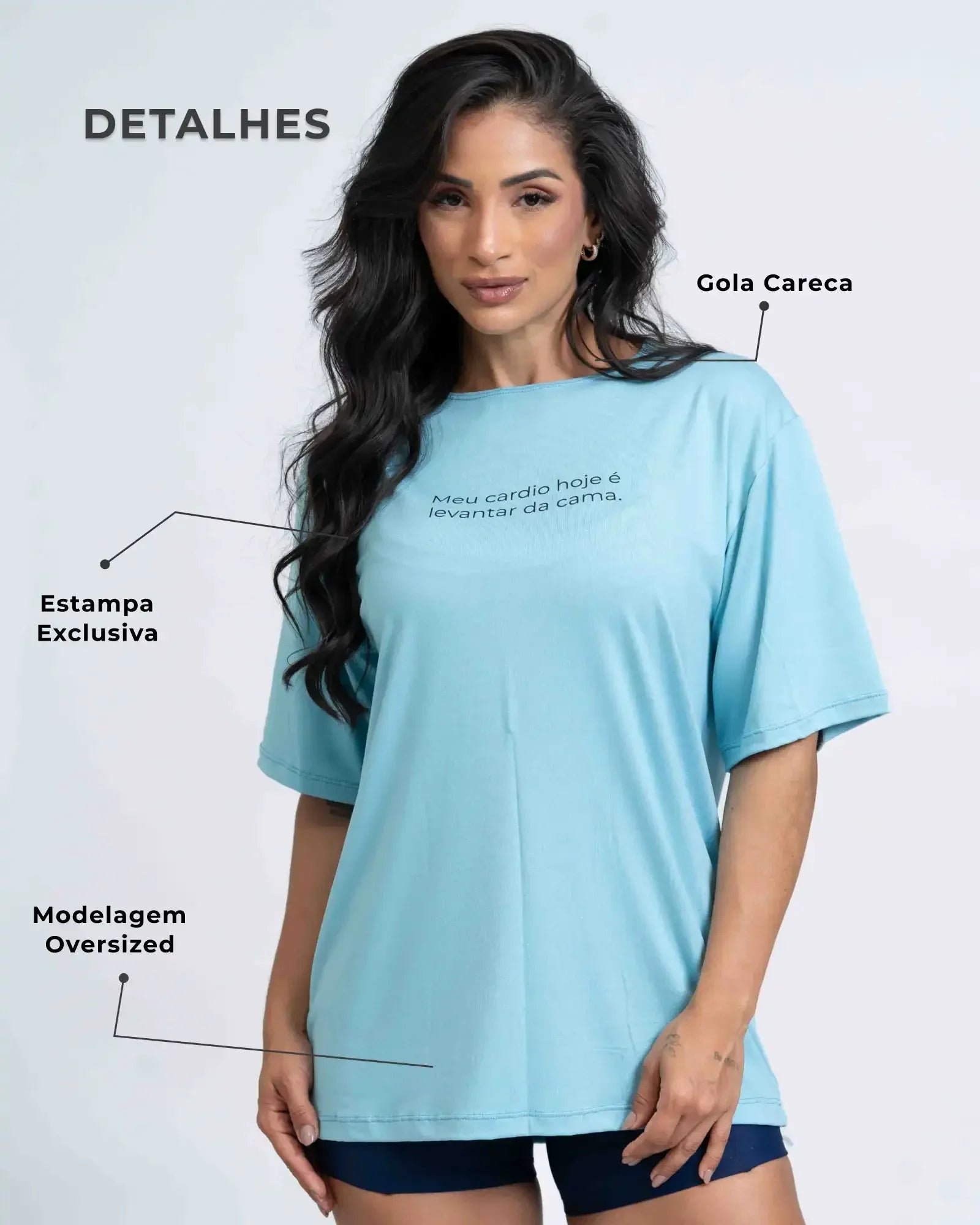 Estampa Exclusiva: A frase divertida “Meu Cárdio Hoje é Levantar da Cama”, perfeita para quem leva a vida com leveza e atitude.