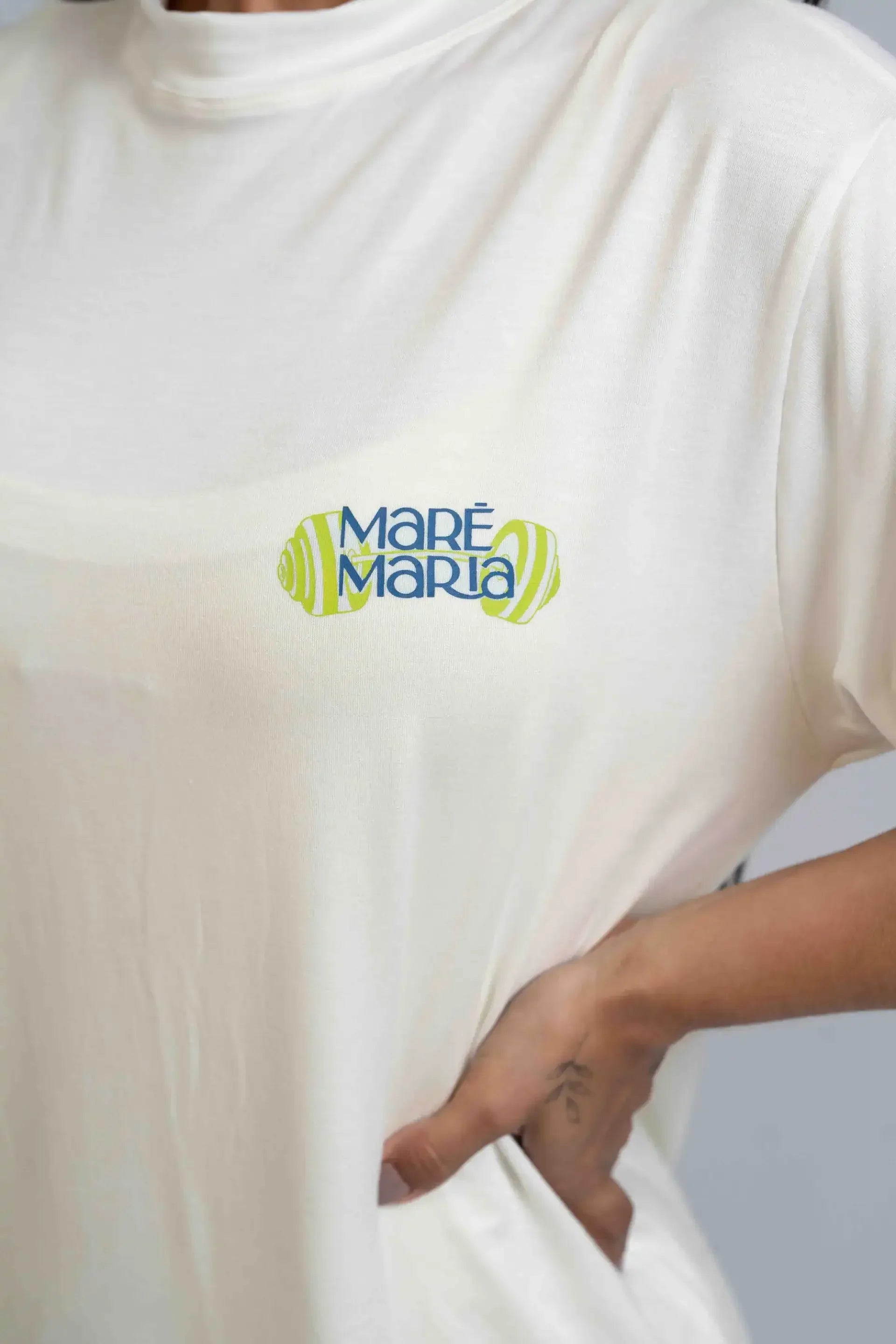 Estampa Exclusiva: A logo Maré Maria acompanhada da palavra “Poderosas”, traduzindo força, autenticidade e estilo, em uma peça que inspira confiança.