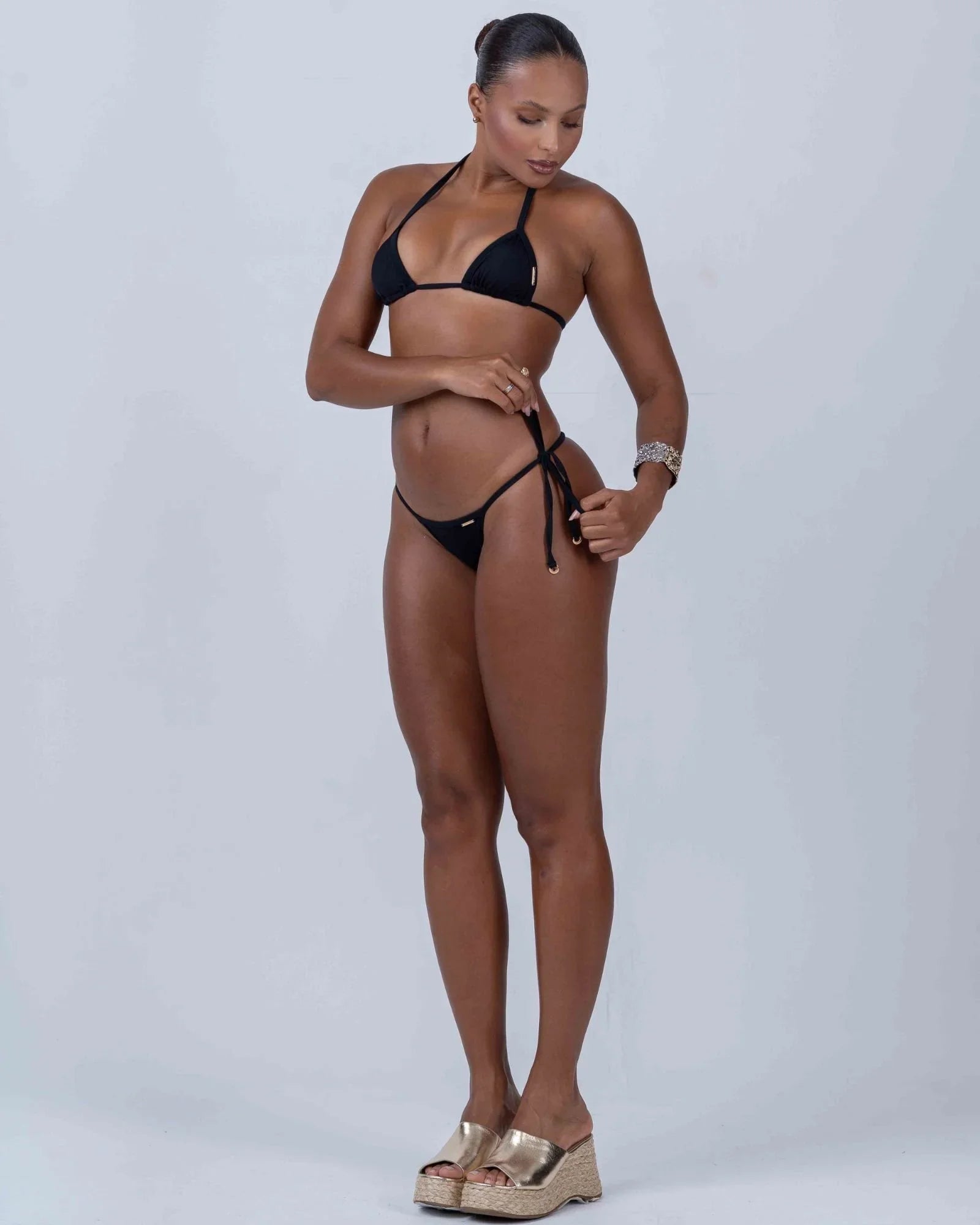 ✔ Amarrações Laterais Ajustáveis – Permitem um encaixe perfeito e confortável ao corpo.