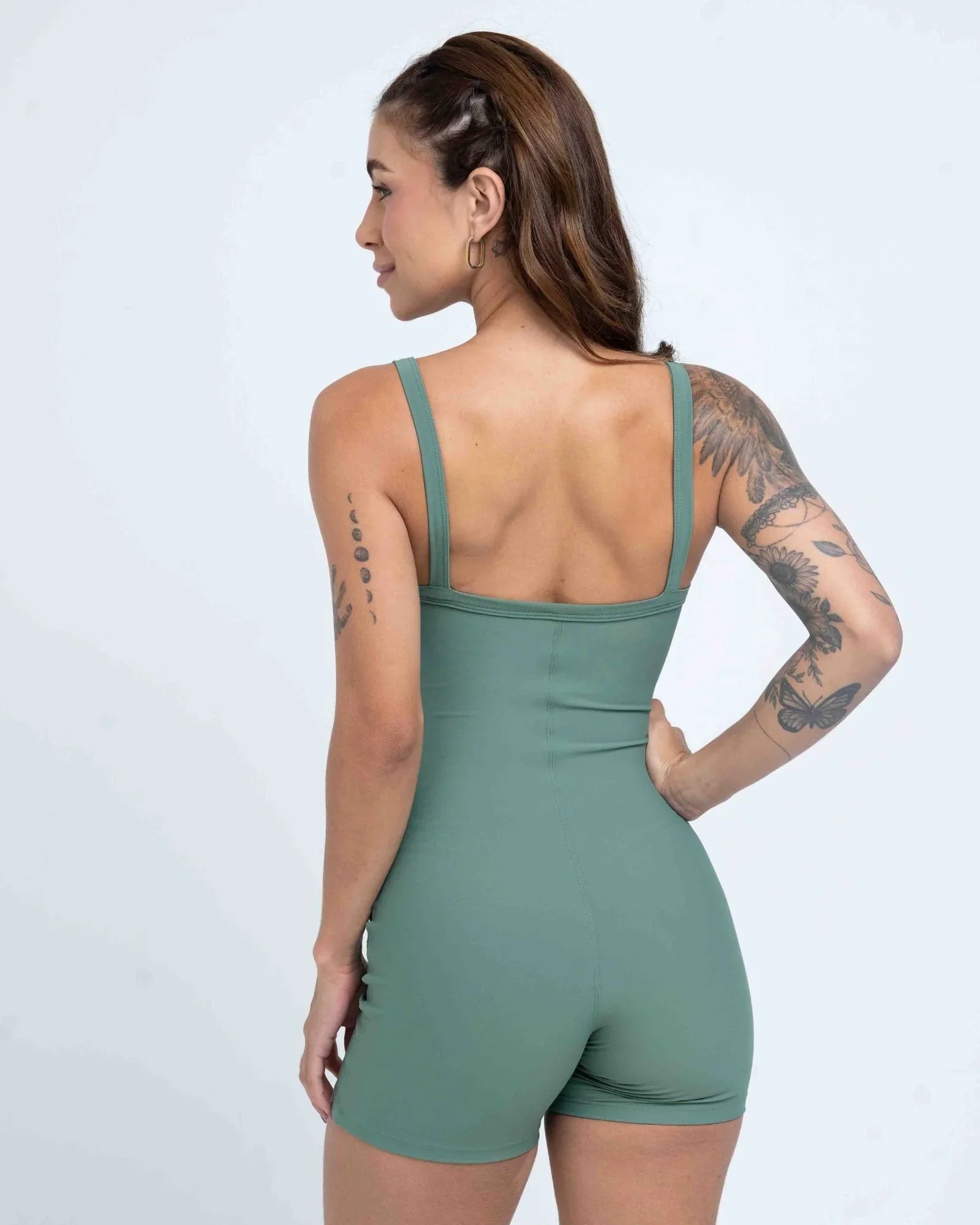 Macaquinho Fitness Flow Verde Eucalipto – Estrutura, Estilo e Liberdade em Movimento
