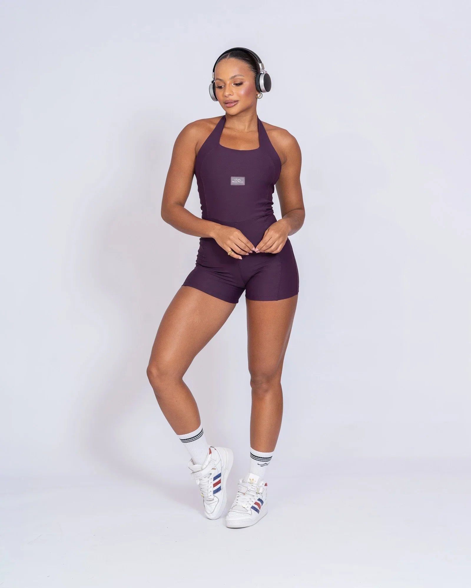 Combine o Macaquinho Native Blueberry com tênis esportivos e acessórios minimalistas para um look moderno e confortável. Perfeito para exercícios físicos ou um dia casual com estilo.