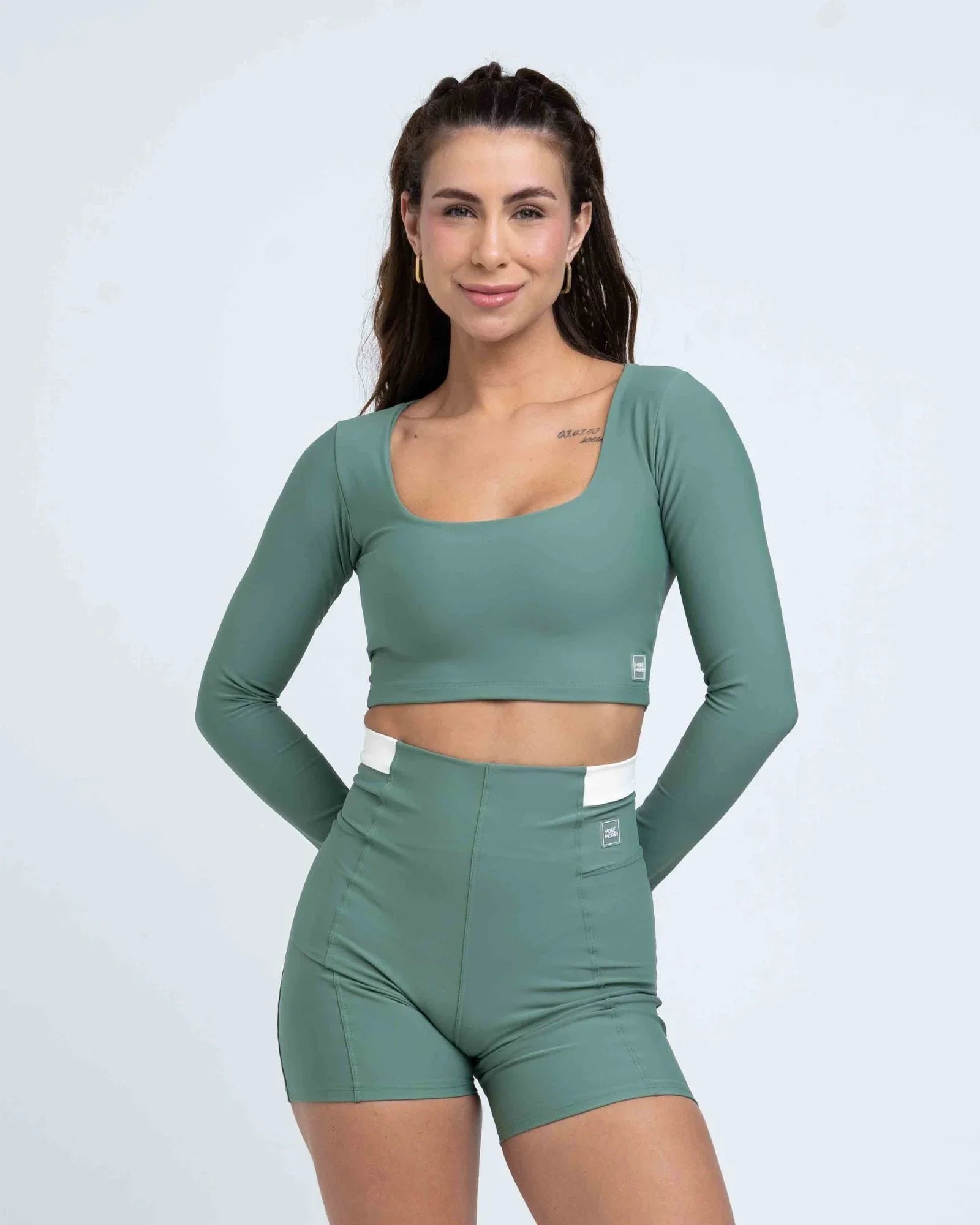 Short Classic Duo Verde Eucalipto com Off White compressão